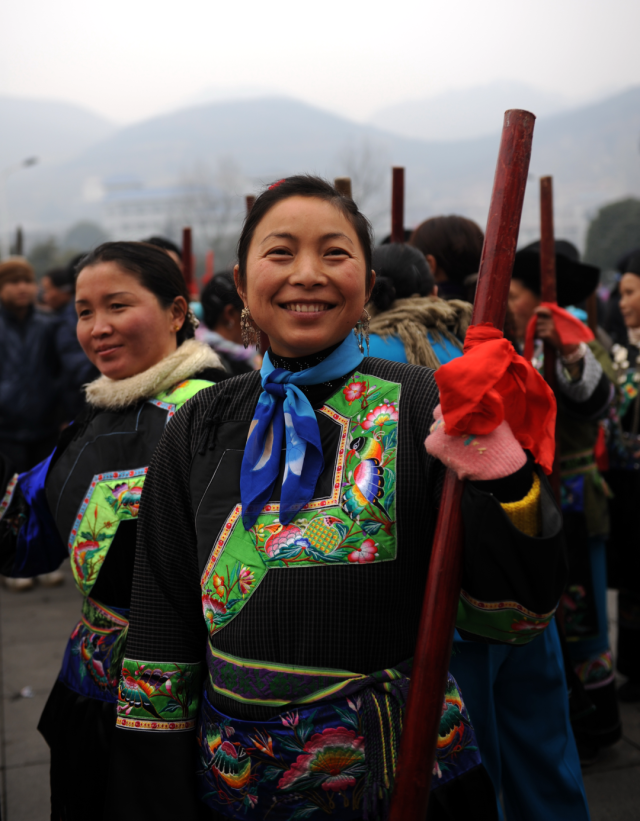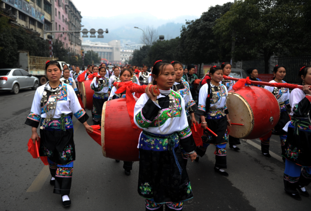 ◎ 2011年,吉首乾州春会游春,多才多艺的苗族妇女。