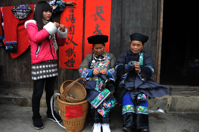 ◎ 2009年,凤凰雀儿寨,打花带的苗族妇女。