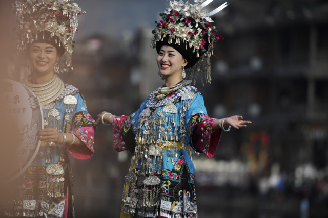 ◎ 2017年,参加凤凰苗族银饰服饰文化节的凤凰队姑娘。