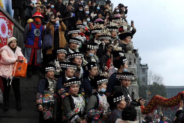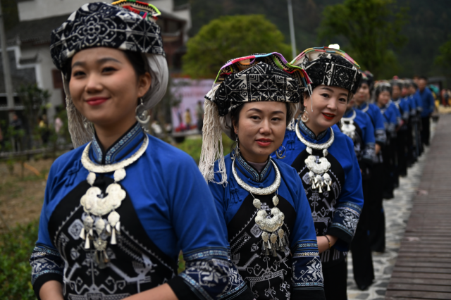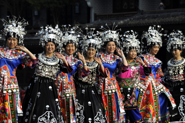 ◎ 2017年,参加凤凰苗族银饰服饰文化节的花垣队妇女。
