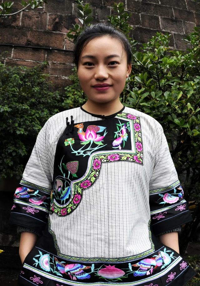 ◎ 2019年,凤凰沱江镇,身着苗绣服的妇女。