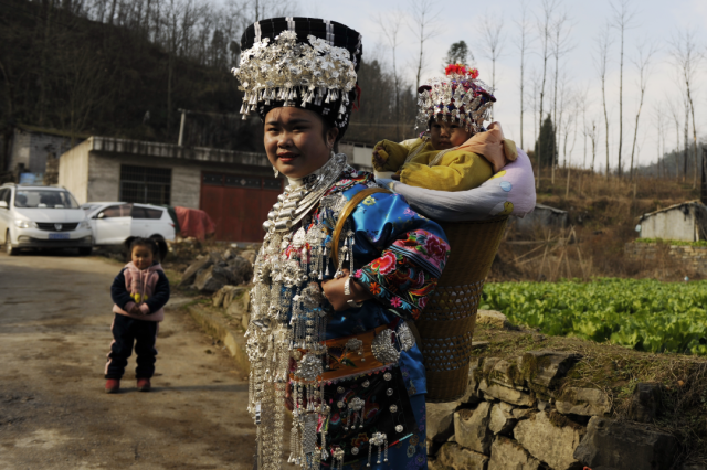 ◎ 2021年,凤凰禾若,背小孩的苗族妇女。