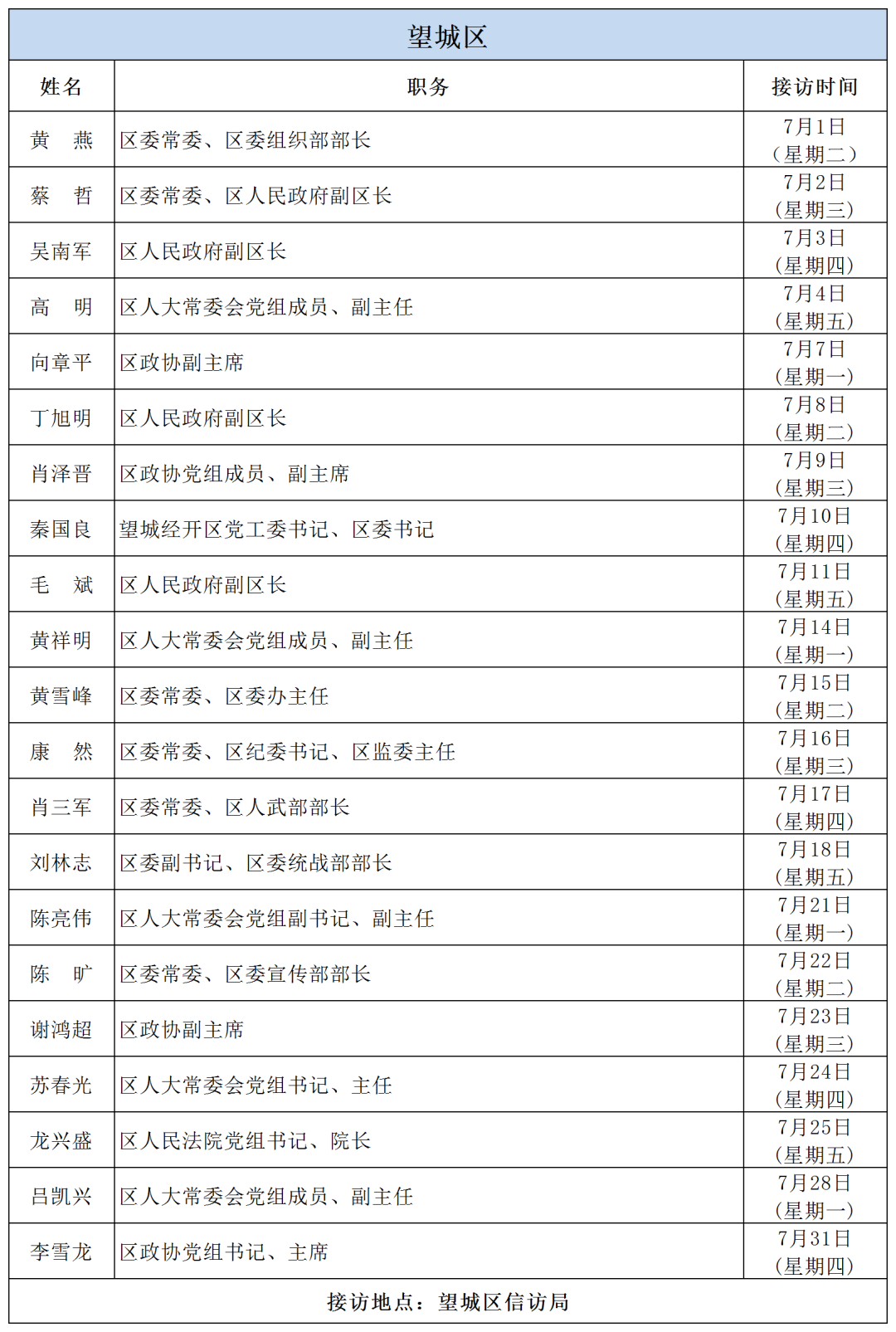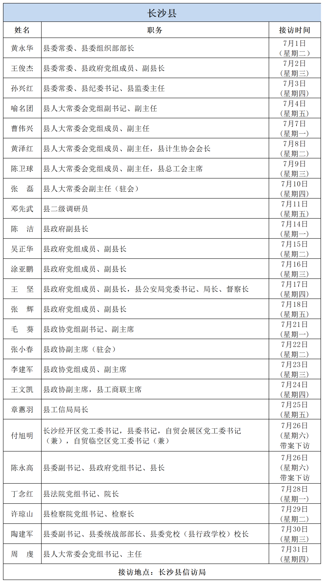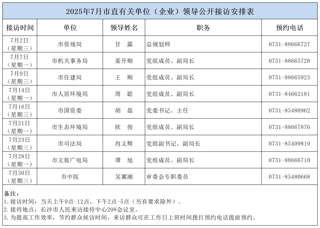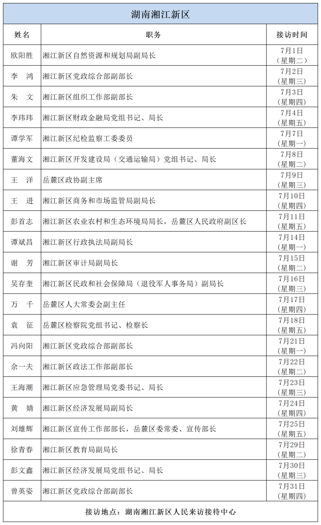 公告 | 2025年7月份湖南湘江新区、各区县(市)及相关市直单位(企业)领导接访安排