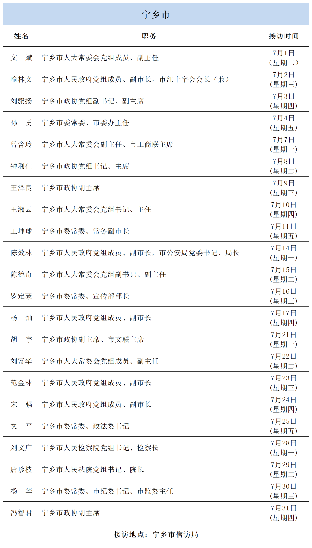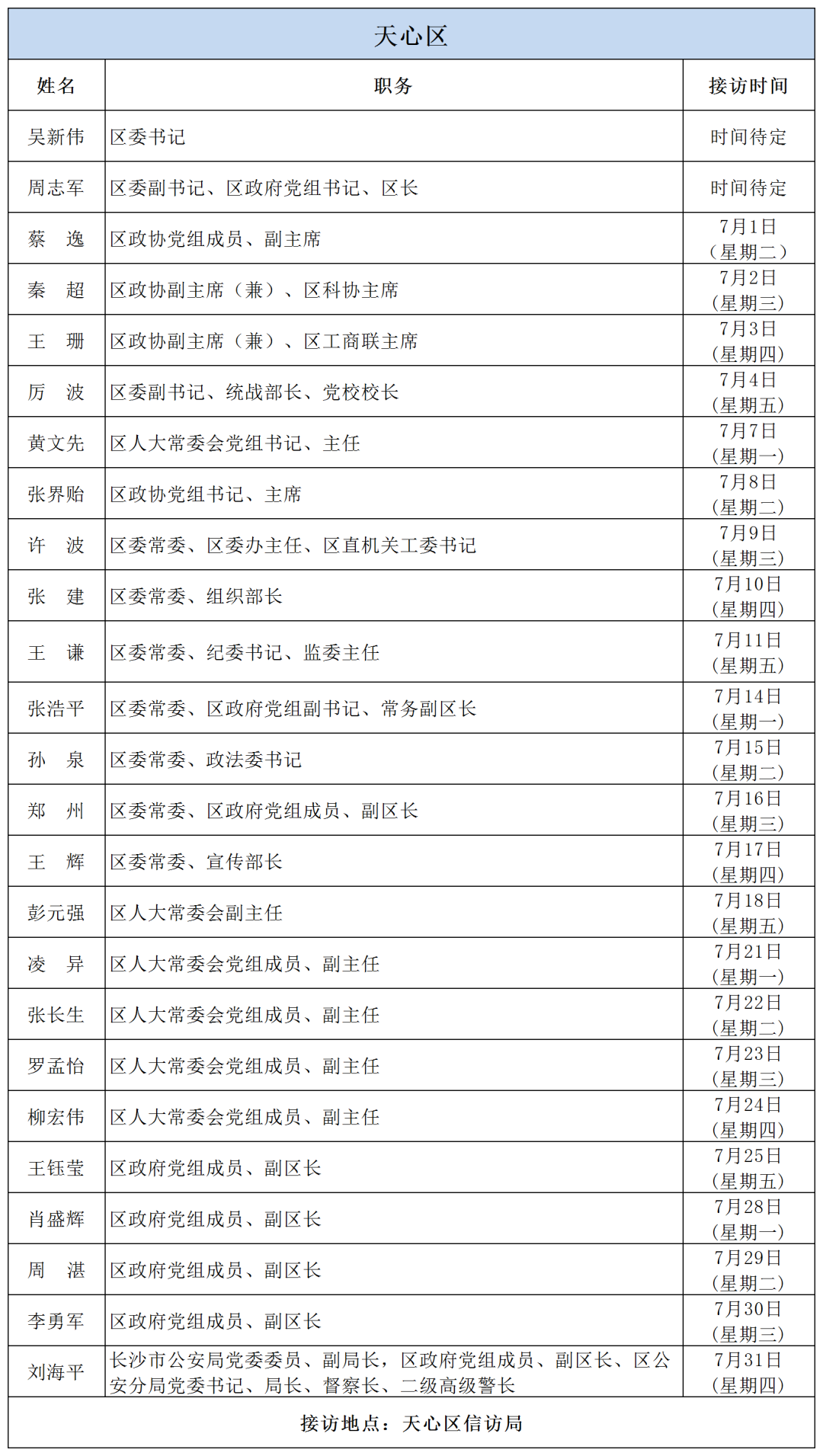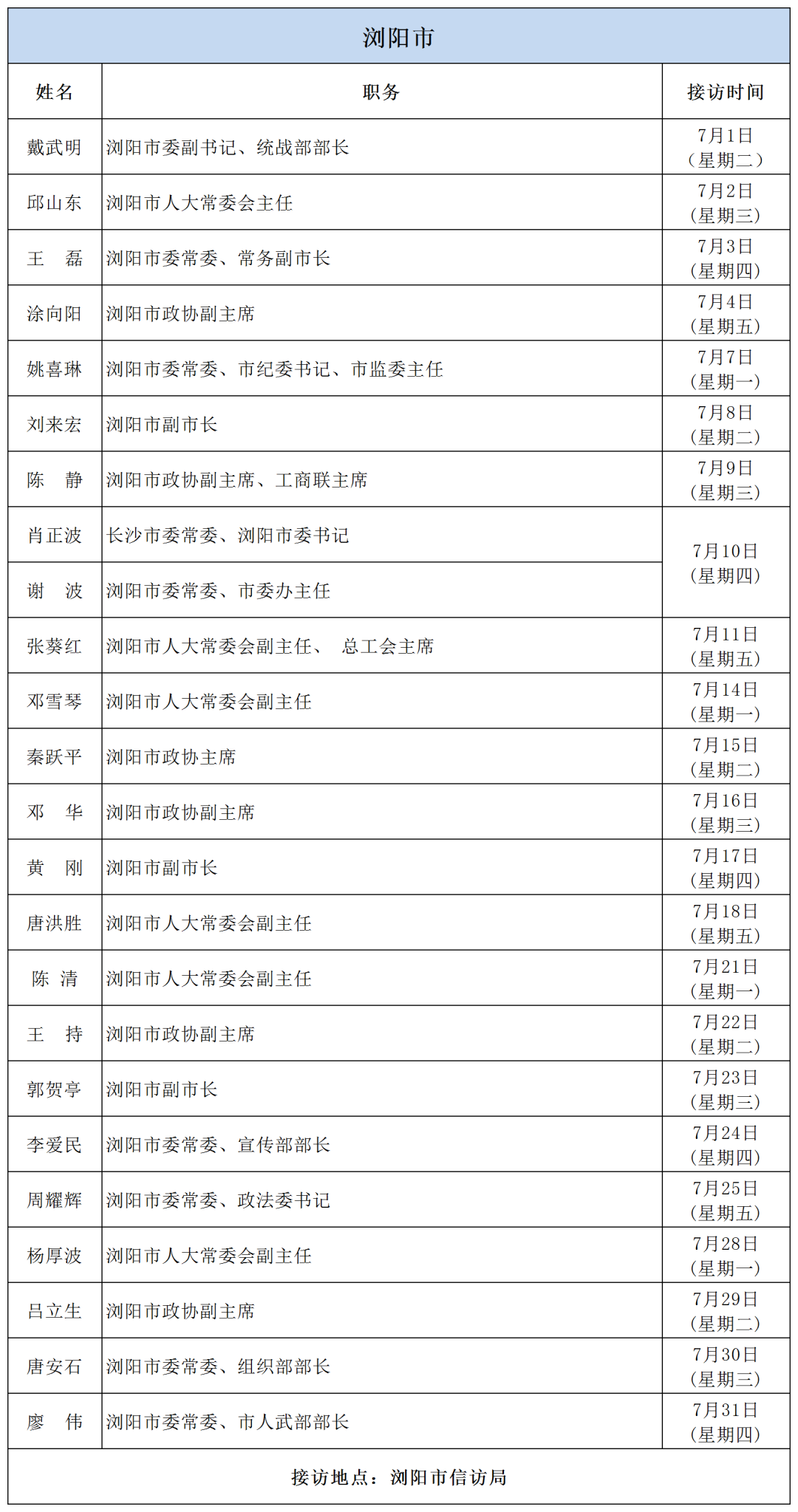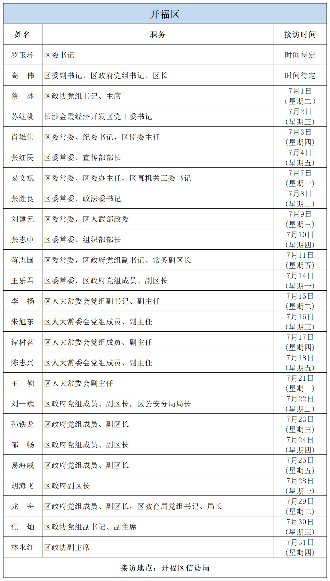 公告 | 2025年7月份湖南湘江新区、各区县(市)及相关市直单位(企业)领导接访安排