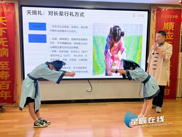 (同学们认真学习中医传承礼仪手势,并举行了庄重的传承仪式。)