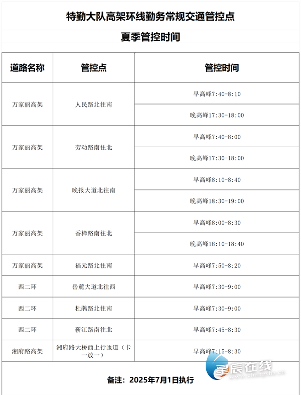 注意!万家丽高架、西二环、湘府路高架最新定时定点管制表公布