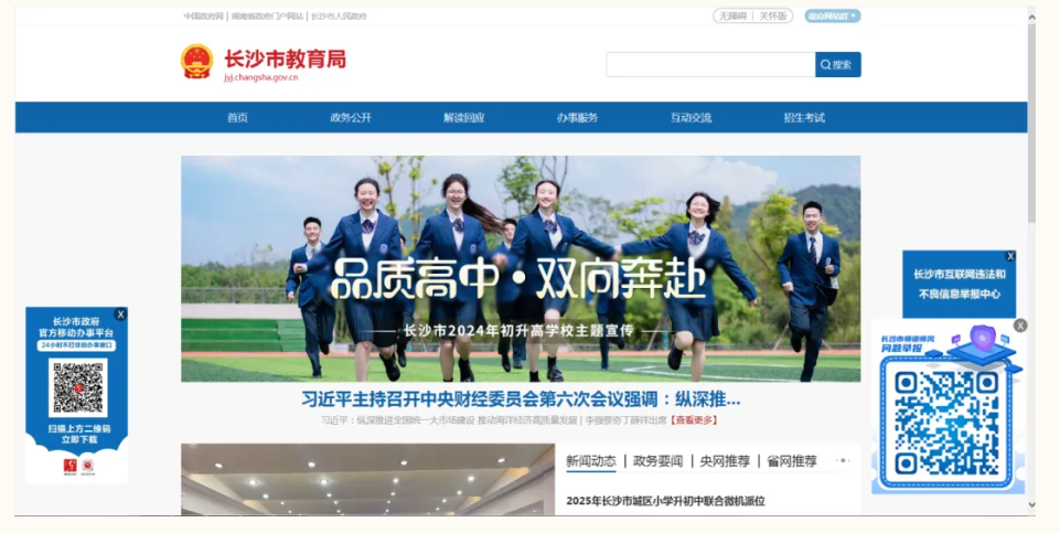 登录网址:http://jyj.changsha.gov.cn/,根据首页图片指引,输入考生信息进行查询。