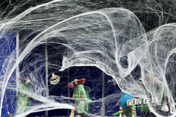《斯拉法的下雪秀》最令人震撼的,莫过于其极致的沉浸式体验,演出使用6000万片特制雪花,从法国空运而来,最远吹雪距离达25米,将整个剧场瞬间变为冰雪童话世界。观众不仅能感受“暴风雪”扑面而来的震撼,还将置身于1800㎡的超巨型蜘蛛网和数个直径两米的五彩互动气球中,仿佛闯入宫崎骏的童话世界。
