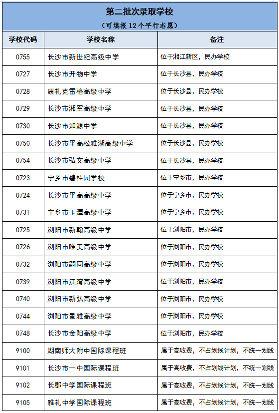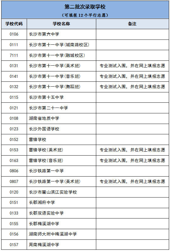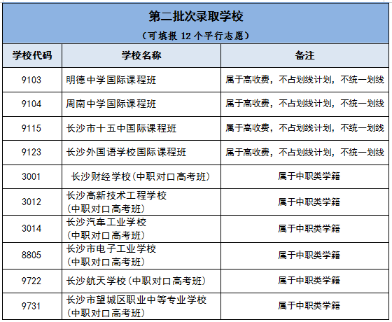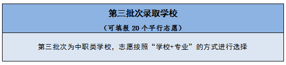 (三)高中阶段学校分为三个批次录取。第一批次录取学校可以填报6个平行志愿,第二批次录取学校可以填报12个平行志愿,第三批次录取学校可以填报20个平行志愿。
