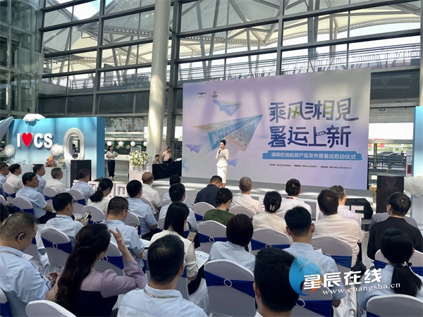 (7月10日,“乘风湘见、暑运上新”——湖南机场航旅产品发布暨暑运启动仪式举行。图为 星辰全媒体记者 郭凤湘 摄)