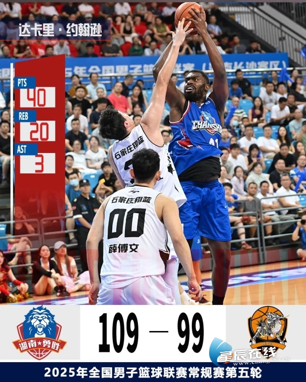 (2025年全国男子篮球联赛常规赛第五轮,长沙勇胜以109:99战胜石家庄翔蓝。)