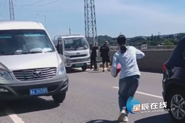 近日,在东二环苏家托立交桥上,驾驶员黄玲峰正平稳驾驶46路公交车。突然,前方左侧车道上一辆轻型货车装货区冒出滚滚白烟,货车司机慌忙将起火的货物扔到路边。