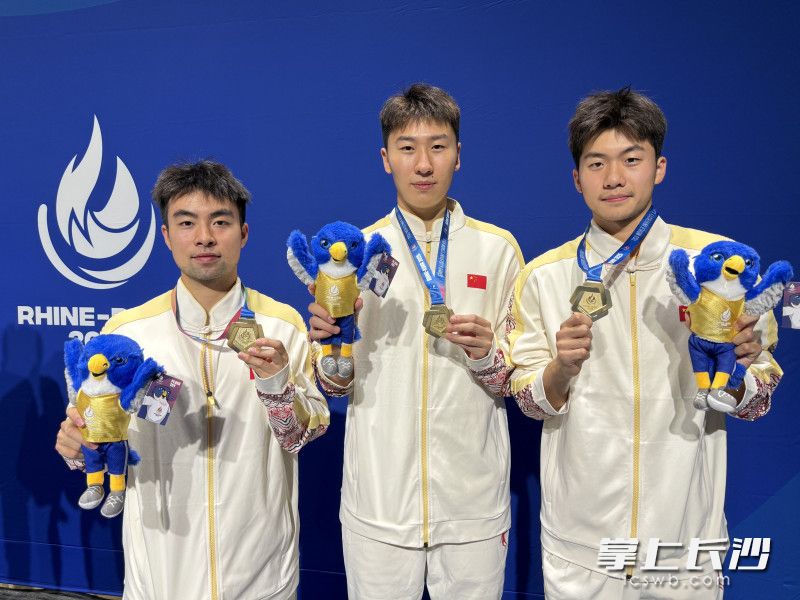 崔赫宸(中)与彭建钦(左)收获本届大运会首枚金牌。