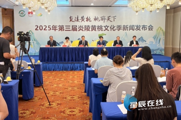 星辰在线7月23日讯(星辰全媒体记者 李政伦 实习生 余若嘉)7月23日上午,2025年第三届炎陵黄桃文化季新闻发布会在长沙举行。记者在会上获悉,2025年炎陵黄桃的种植面积约9.5万亩,产量约8.9万吨,现已陆续开园上市。