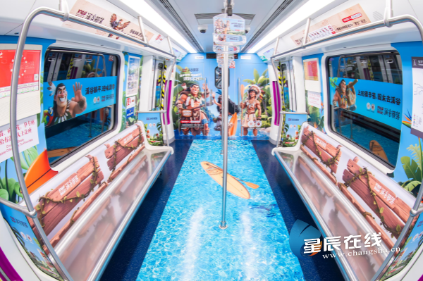 星辰在线7月25日讯(星辰全媒体记者 岳珊 李政伦)长沙人的盛夏“逃离计划”有了新坐标!近日,中国首个原始部落实景溯溪乐园——溪谷部落在浏阳大围山脚下正式启幕,通过地铁全景专列、全城LED屏动态宣传等创新形式,将山野清凉直送城市核心。长沙地铁4号线“溪谷部落主题专列”满载藤蔓图腾与部落野人穿行于城市地下,将原始部落的清凉野趣带入市民通勤生活。