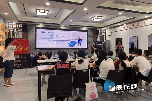 (清水塘社区的活动室内,暑期“红星班”的孩子们排排坐,一场以“垃圾分类知识普及与巩固”为主题的宣讲活动正在进行。图片由通讯员 提供)