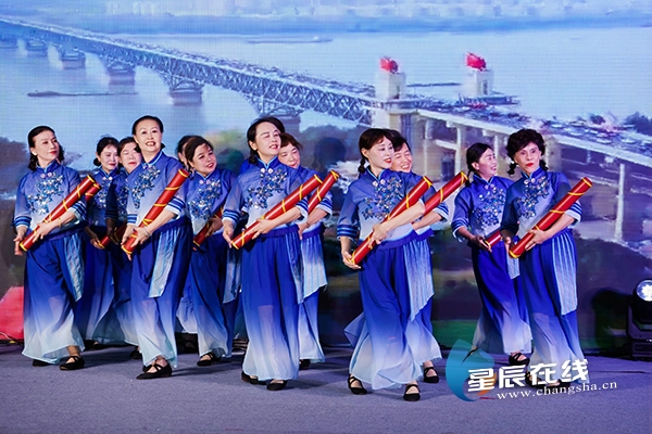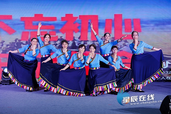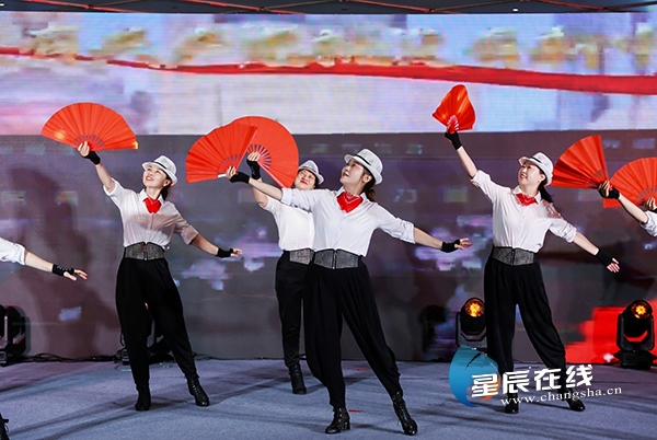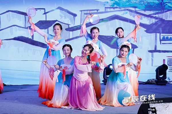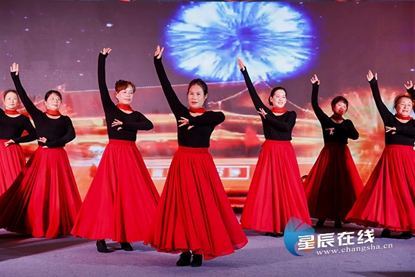 (浏阳河街道的民族舞《开口就唱共产党》以优美的舞姿和真挚的情感,赢得了现场观众的热烈掌声,深情表达了人民群众对党的无限热爱。)