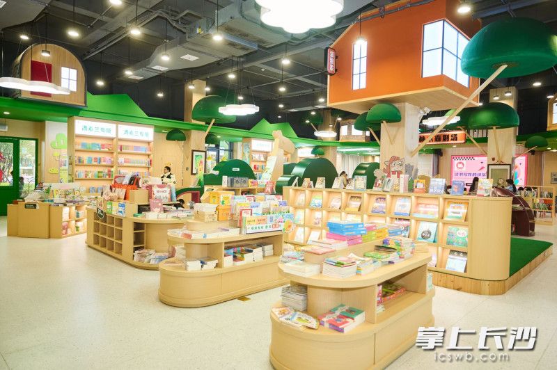 位于梅溪湖畔的笨狼家林木森书店,则是儿童文学作家汤素兰笔下的“童话现实版”。书店从《寻找林木森书店》《笨狼的故事》等作品中汲取灵感,天花板悬挂的“笨狼家”木屋模型、云朵造型灯饰与动物形象书架相映成趣,树洞式阅读空间让孩子们从“旁观阅读”变为“走进童话”。店内铺设的绿色草坪打造出 “森林仙踪”场景,林木森剧场如同森林里的独栋小屋,成为孩子们举办绘本剧表演、手工课的专属天地。原木书架与绿树造型支柱营造出温润氛围,这里既是汇聚全球优质童书的阅读乐园,也是成人暂避喧嚣的心灵驿站,实现了童话与现实的温柔联结。