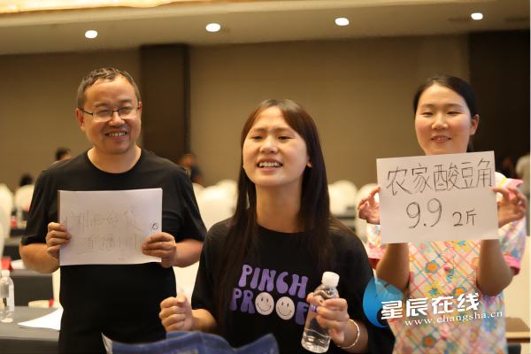 在临时搭建的直播间里,学员们火力全开。保靖县幼儿园园长彭清竹的转变尤为惊艳。初入课堂时,她曾质疑:“这演练就是走过场,我们哪能真带货?”然而,在老师的持续鼓励和同组伙伴的暖心帮助下,她克服了紧张。直播当天,她特意穿上压箱底的苗族盛装,化身“湘”村主播,左手扶支架,右手挥舞酸豆角,卖力推介家乡风味,鼻尖沁出细汗也全然不顾。她所在的“湘土湘情团—助农专场”首播1小时即收获870元订单,凭借笔记本上的“干货”和“敢试就不怕输”的冲劲,勇夺实战检验第一名。