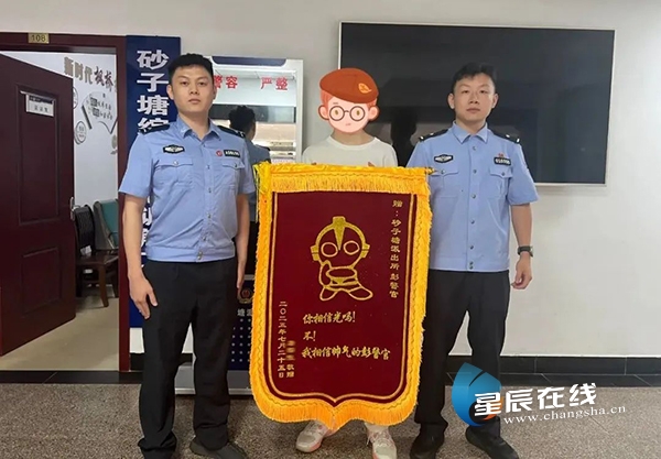 星辰在线7月31日讯(星辰全媒体记者 龚乐怡)7月29日下午,长沙市公安局雨花分局砂子塘派出所收到一面印有奥特曼卡通图案的特别锦旗,这面 “显眼包” 锦旗背后,藏着一段暖心的警民故事。