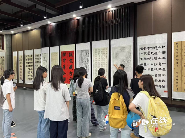 星辰在线8月5日讯(通讯员 樊朴隽)星城长沙,暑气正盛,7月30日上午,长沙市雷锋学校2415班的高一“雷小锋”们却以一场浸润墨香的研学实践,为假期注入独特的精神滋养。他们走进望城区欧阳询书画院,在墨韵丹青间亲身体悟书法艺术的博大精深,用青春脚步丈量文化传承之路。