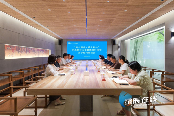 (长沙简牍博物馆举行“简书留香·薪火相传”纪念杨芬女史暨熊易轩同学升学慰问座谈会。)
