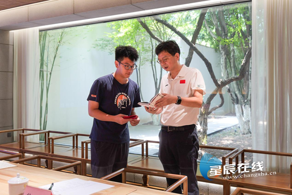 (易鹰向熊易轩同学赠送了一份饱含深意的礼物——一本精美的《长沙日历》。图片均由通讯员提供)