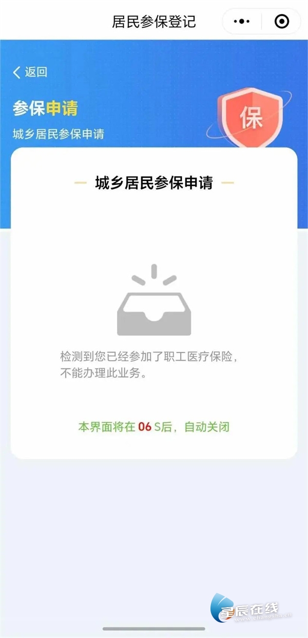 如果您正常参加职工医保,系统会弹出提示“检测到您已经参加了职工医疗保险,不能办理此业务。”