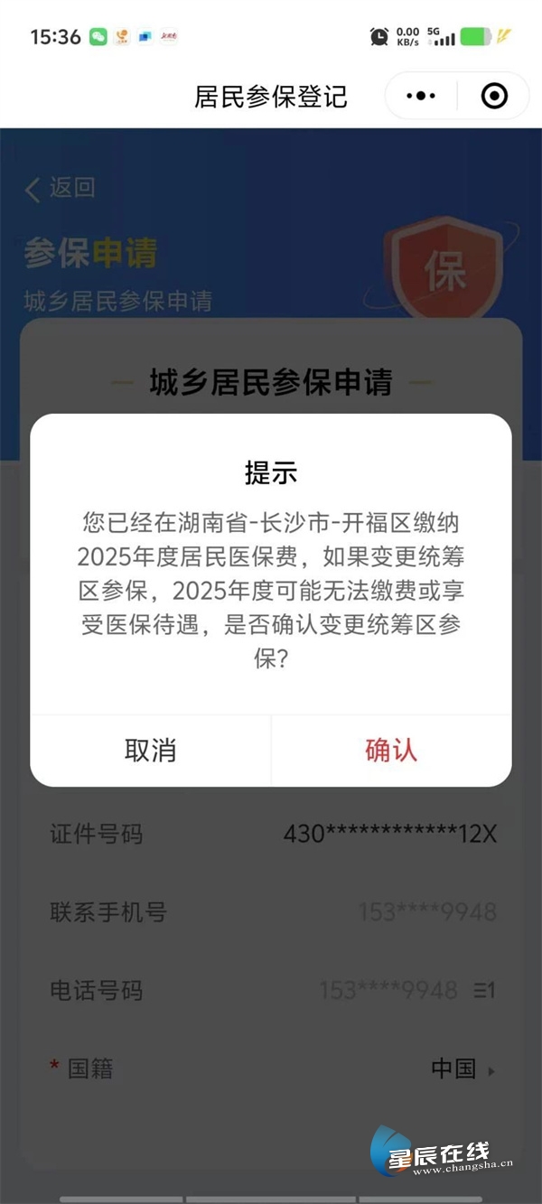 如果您正常参加我省居民医保且已经缴纳了当年居民医保,这时系统会弹出提示“您已经在XX统筹区缴纳XX年度居民医保费,如果变更统筹区参保可能无法缴费或享受医保待遇,是否确认变更统筹区参保?”(温馨提示:已经缴纳当年居民医保费的参保人,只能在缴费地参保才能享受待遇。若想变更参保地缴纳次年居民医保费,建议等到12月份再办理。),然后点击“继续办理”。