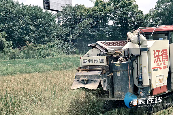 星辰在线8月7日讯(通讯员 李军)伴随着联合收割机的轰鸣声,长沙市开福区沙坪街道钟石社区撂荒治理地迎来了早稻丰收季。金黄的稻浪随风起伏,饱满的稻穗在阳光下泛着金光,田野处处一派繁忙的丰收景象。