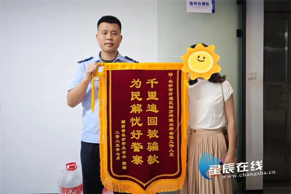 (警方成功拦截全部20万元被骗款并返还给王女士。图片来自 开福区四方坪派出所)