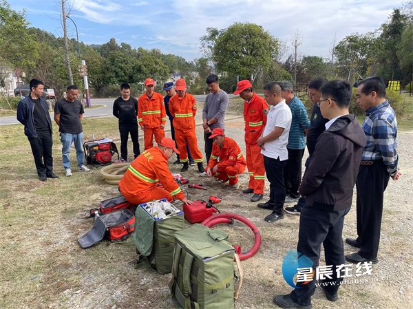 (专业人员在长沙县对森林火灾扑救器材正确使用方法进行演示教学。以上图片均由 长沙县应急管理局 提供)