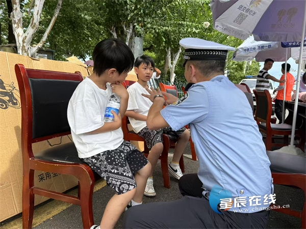 (活动现场,民警向孩子们进行交通安全知识授课。图片由 长沙交警 提供)