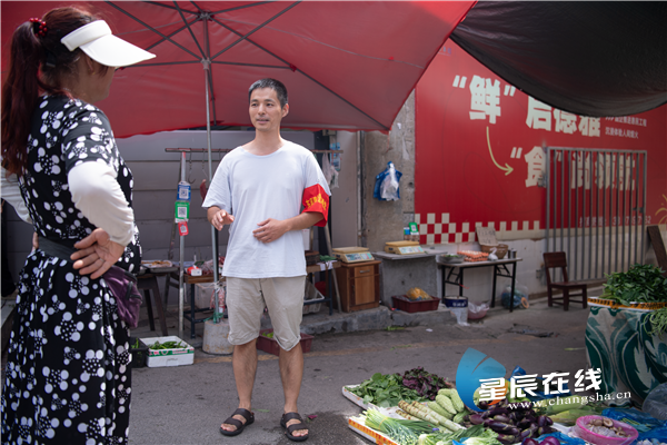 (德雅路社区的城管专干李清在对辖区摊主进行文明劝导。)