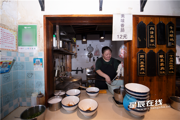 (米粉店老板牡丹正在为客人准备可口的餐食。)