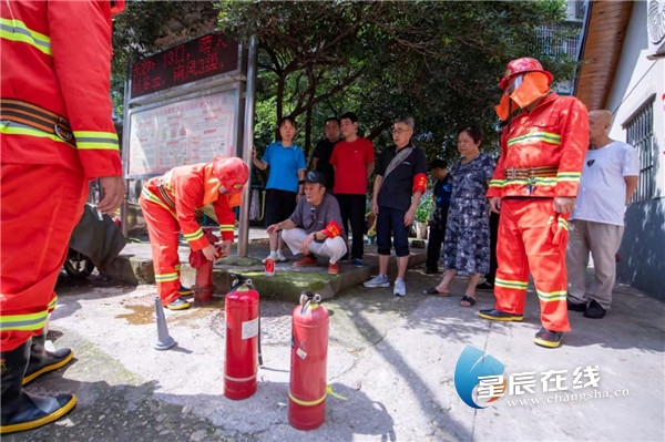 (砚瓦池社区的窄巷里,义务消防队正顶着太阳向大家宣传消防常识。图片均为 星辰全媒体记者 张奇涛/摄)