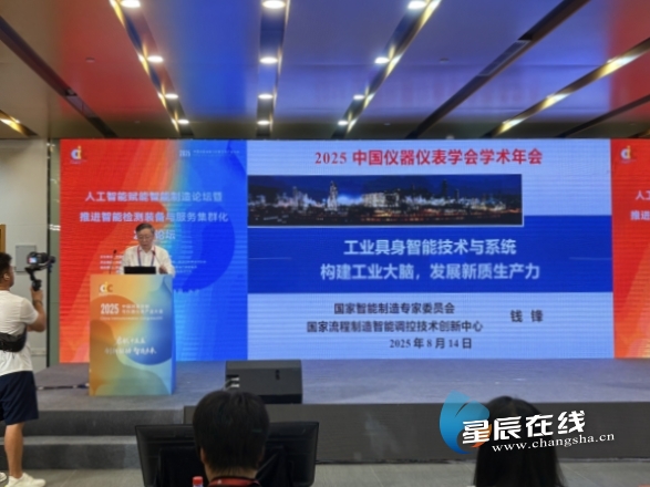 星辰在线8月16日讯(星辰全媒体记者 孙烨)8月14日下午,“人工智能赋能智能制造论坛暨推进智能检测装备与服务集群化发展论坛”在长沙举办。来自全国智能制造领域的院士专家、企业代表及行业精英齐聚一堂,共同探索人工智能与智能制造深度融合的前沿趋势,为长沙乃至全国制造业高质量发展注入新动能。本次论坛由中国仪器仪表学会、湖南省科学技术协会联合主办,长沙市科学技术协会、中国仪器仪表学会智能制造推进工作委员会具体承办。