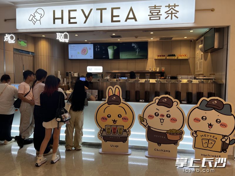 被Chiikawa可爱形象吸引的顾客,在喜茶门店排队购买联名产品。长沙晚报全媒体记者 陈星源 实习生 贺帅 摄
