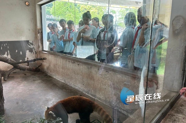 长沙市一中城南初级中学2413班的同学走进长沙生态动物园,为小熊猫“龙大”开启了一场温馨的爱心助养之旅。工作人员从外貌特征、生活习性到物种分类,详细讲解了大熊猫与小熊猫的差异。随后,同学们还为助养的小熊猫“龙大”举行挂牌仪式。
