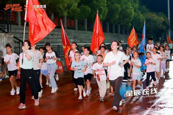 “校长喊你来运动” 校园运动嘉年华中,天心区仰天湖赤岭小学、长郡文庙坪小学积极响应,精心组织代表团参与其中,在校园公益荧光欢乐跑环节中,与来自全市各学校的参与者一同驰骋赛道。