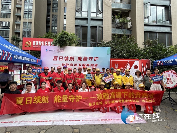 星辰在线8月21日讯(星辰全媒体记者 郭凤湘)8月21日,“夏日续航 能量守护——致敬高温下的奔跑者”主题活动在长沙市雨花区左家塘街道曹家坡社区举行,让高温下的奔跑者感受到来自社会各界的温暖与关怀,搭建起社区与新就业群体之间的连心桥,共同推动社会和谐发展。