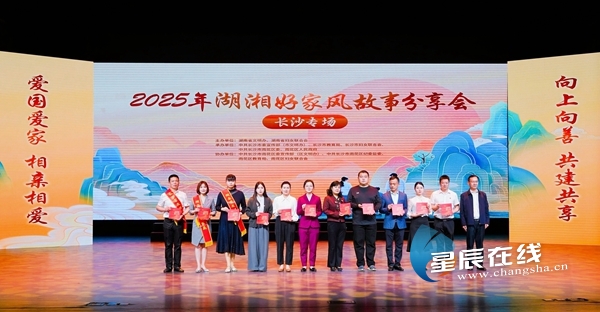 多年来,长沙坚持举办好家风故事会,以故事打动人、以音乐感化人,在音乐厅、图书馆、学校等未成年人活动阵地开展好家风音乐故事会巡演。4月15日,2025年湖湘好家风故事分享会(长沙)专场在长沙市群众艺术馆实验剧场举行,将新时代家风建设与文艺表演形式生动融合,通过情景剧、快板、诗乐等特色节目,为观众带来一场沉浸式的家风课堂体验。刘少奇故里管理局宣讲员肖煊一作《刘少奇和他的家人》主题微宣讲,为千千万万党员干部树立了一面镜子;《好婆媳夸夸团》,点赞李迪平、周秋菊、何泽军等好婆媳互相体谅、互相关心、共渡难关的真挚情感;长沙市新时代好少年刘雅彤、刘静远家庭接受《好少年的家风故事》主题微访谈,分享了家风家训引导自己健康成长的动人故事;望城区月亮岛街道金甲社区的沈建芝讲述了平凡英雄背后的家风传承……一个个情真意切的好家风故事通过访谈讲述、情景表演深入人心,赢得观众阵阵掌声。