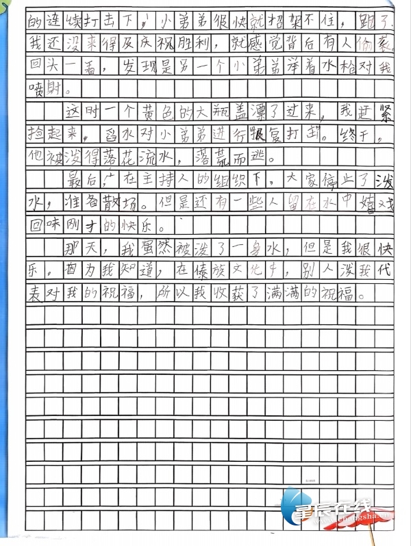 那天,我虽然被泼了一身水,但是我很快乐。因为我知道,在傣族文化中,别人泼我代表对我的祝福,所以我收获了满满的祝福。