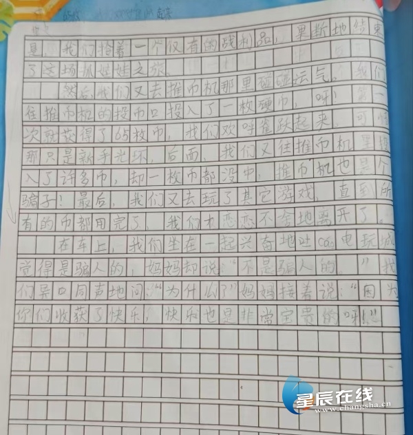 (小作者作品手写稿。作者供图。)