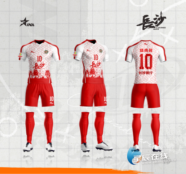 今日,长沙队还发布了球队出战湘超联赛的球衣,球衣一共两套,主场为红白色调,客场为蓝色色调,球服上呈现了长沙的标志性建筑,比如世界之窗、烈士公园、天心阁、杜甫江阁、开福寺等,球服上长沙的“沙”字更是独具匠心地融合了长沙火车站的火炬标志,象征着城市的传承与进取,整体设计充分彰显了地域文化特色。