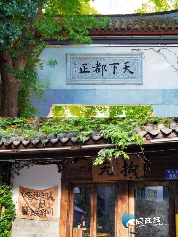 都正街位于芙蓉区西部,毗邻古时长沙城制高点天心阁。作为长沙城内少数得以较好留存的历史街巷,它如同一位沉默的时光守护者。都正街正门口牌楼石门柱上刻着一副对联:“尘封一页神游湘楚乌衣巷,回味千年梦绕长沙美食街。”字句间恰好勾勒出古街的韵味和古城的人文风华。