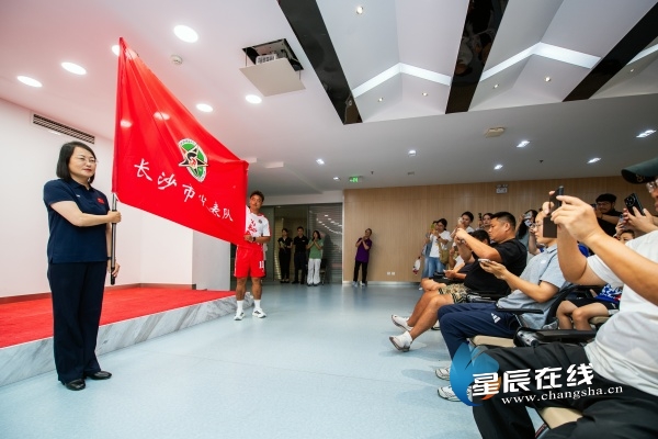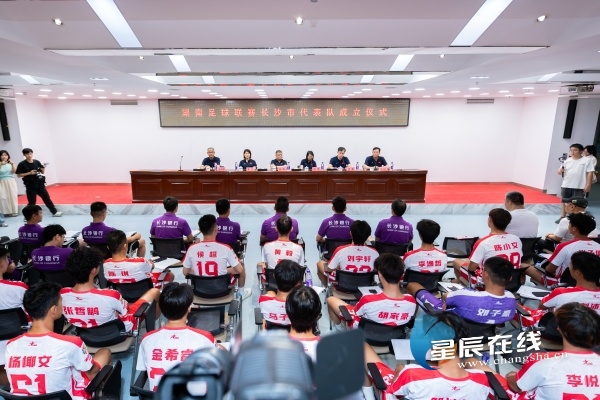 星辰在线8月29日讯(星辰全媒体记者 贺亚玲)2025年湖南省足球联赛(简称 "湘超")揭幕战将于9月7日在贺龙体育场激情开赛,全省14座城市的代表队已整装待发。8月29日,湖南足球联赛长沙市代表队成立仪式举行,全体教练员、运动员及工作人员正式亮相。这支队伍新老结合、活力充沛——既有经验丰富的老将坐镇稳定军心,也有新生代球员以蓬勃体能与凌厉冲劲注入新鲜活力,共同剑指联赛佳绩。