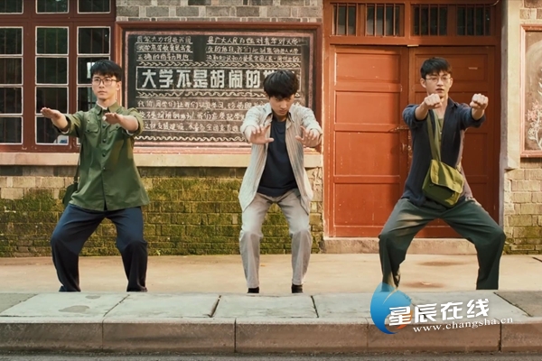 影片对历史场景的还原堪称“考古式”的视觉重建。通过黔阳师专校园的青砖灰瓦、斑驳大字报墙、粗布棉袄与煤油灯等细节,精准复现了70年代末的湘西教育生态。这种写实并非静态陈列,而是融入叙事肌理:大字报前学生的长久伫立、派出所“捞人”的市井烟火、师生共饮珍酒的搪瓷缸与粗陶碗等场景,以生活流的质感承载历史真实。此外,道具的符号性尤为突出——易图境为学生解决学费困难所掏出的皱褶纸币、教师宿舍窗棂上晾晒的毛笔与墙角的焦墨画稿、当时流行的自行车“二八大杠”等等,这些物质痕迹既是年代凭证,亦成为师徒情感的隐性载体,践行了“艺术真实源于生活真实”的创作准则。