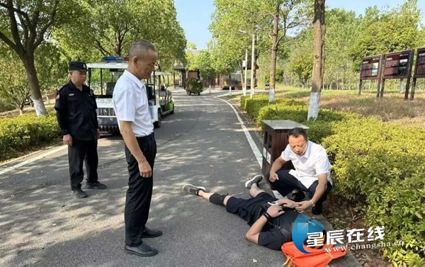 星辰在线9月2日讯(通讯员 城载)8月31日上午8点左右,洋湖国家湿地公园安保巡逻员邓新骑在公园三期例行巡查发现地面上躺着一名游客并双目紧闭。他立即快步上前轻拍呼喊,见游客无回应,初步判断因高温中暑导致意识丧失。