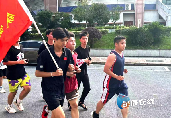 (曹志华与学生一起参加“环校园”跑。湖南高铁职院供图)